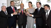 José Luis Ruiz Solaguren, Ángel Vaquero, Amador Díez de Íscar, Nieves Álvarez, Juan Vicente Herrera y Javier Pérez Andrés brindan tras la entrega de los premios.