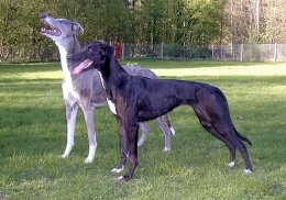 En el galgo la musculatura es larga y plana, por el contrario en el Greyhound es redondeada y abultada, siempre dará más impresión de potencia.