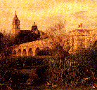 al rio Tormes, donde prepondera la piedra de Villamayor en sus edificios.