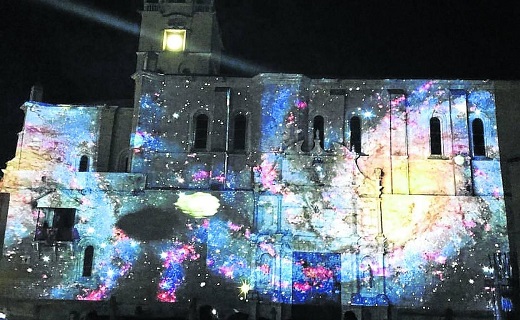 Repetición del espectáculo 2018 “Orbitas Cruzadas”, proyectado sobre las fachadas de la Colegiata de San Antolín hasta el Ayuntamiento.