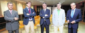 El profesor Jesús Urrea; Enrique Saiz, director de Patrimonio de la Junta; Manuel Sánchez, del Ayuntamiento; Gregorio Alarcia, de la Confederación Vallisoletana de Empresarios, y José Antonio Lobato, de la Cámara de Comercio |